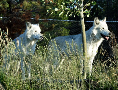 then it was time feeding time. The wolves are fed inside out of view so that the Vet/keepers can get a good look at each animal. While inside, another keeper hides hefty "treats" throughout the compound for the wolves to hunt for upon their return. This fellow found a big treat hidden in a tree.